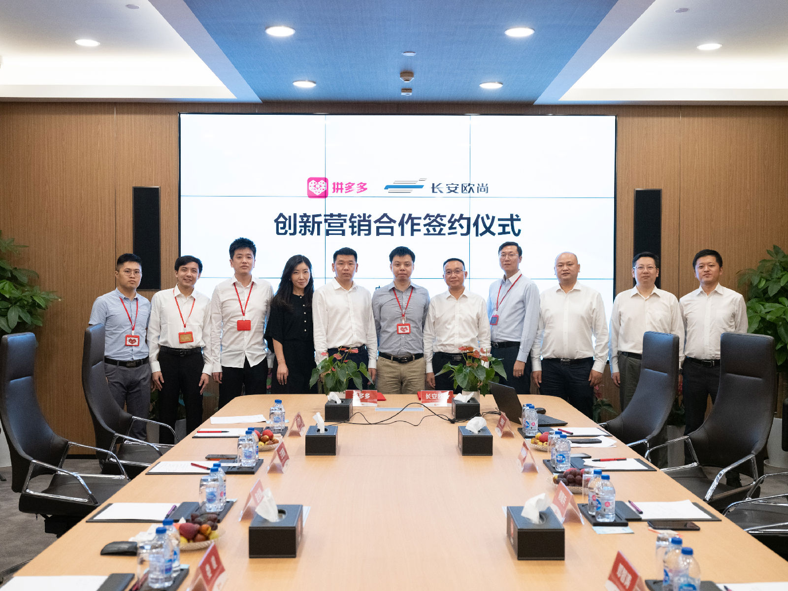 簽字地點(diǎn)是互聯(lián)網(wǎng)電商新貴拼多多的總部。東道主是拼多多聯(lián)合創(chuàng)始人、副總裁趙佳臻(冬棗)攜汽車事業(yè)部總經(jīng)理婁峻(千羽)等,而迎來的合作伙伴是由長安汽車執(zhí)行副總裁何朝兵帶隊(duì),包括長安歐尚汽車副總經(jīng)理?xiàng)罟馊A等在內(nèi)的長安歐尚汽車團(tuán)隊(duì)。