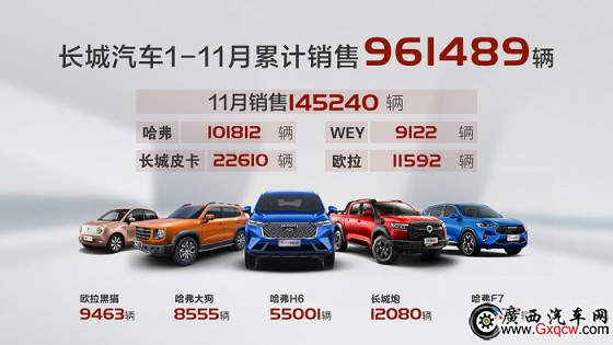 銷量層面,長(zhǎng)城汽車一路走高。數(shù)據(jù)顯示,11月,長(zhǎng)城汽車銷售新車145240輛,同比增長(zhǎng)26%,環(huán)比增長(zhǎng)7%。在此基礎(chǔ)上,長(zhǎng)城汽車1-11月累計(jì)銷量達(dá)961489輛,再次突破100萬輛大關(guān)毫無懸念!而這,也將是長(zhǎng)城汽車連續(xù)第五年達(dá)成百萬輛成就,中國(guó)汽車領(lǐng)軍者實(shí)力可見一斑。