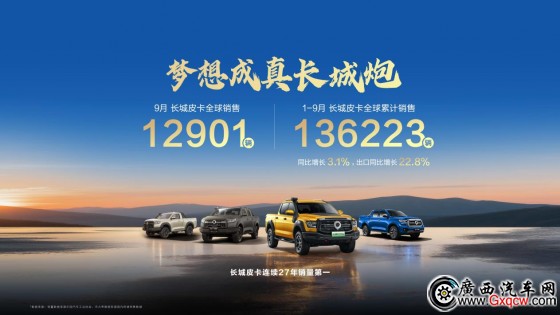 日前,長城皮卡公布9月銷量數(shù)據(jù),長城皮卡9月全球銷售12901輛。1-9 月,長城皮卡全球累計銷售136223輛,同比增長3.1%。國內(nèi)終端市占率近50%,中國每賣出兩臺皮卡,就有一臺是長城。1-9月,海外累計銷售46068輛,同比增長22.8%,其中9月銷售5437輛。