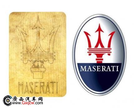 大約在1902年,瑪莎拉蒂兄弟將工廠遷址;鸹ㄈ闹圃燹D(zhuǎn)移至新的工廠,并將工廠取名為Officine Alfieri Maserati SA。他們打算制造自己的汽車參加各類國(guó)際賽事,因此需要設(shè)計(jì)一個(gè)標(biāo)志來確保其新車能從眾多的賽車中脫穎而出。他們決定讓對(duì)汽車和賽車制造沒有興趣的藝術(shù)家弟弟馬里奧•瑪莎拉蒂設(shè)計(jì)新標(biāo)志。瑪莎拉蒂的家族朋友和阿爾菲力•瑪莎拉蒂的朋友斯特爾里奇侯爵遂即向馬里奧提出建議,建議他借鑒馬喬里廣場(chǎng)海神雕塑上的圖案,當(dāng)時(shí)Officine Alfieri Maserati SA正位于該廣場(chǎng)中。因此,馬里奧決定使用海神的三叉戟,同時(shí)還采用該市的顏色——紅色與藍(lán)色來突出公司與博洛尼亞的淵源。直至今日,三叉戟圖案和文字部分仍分別采用紅色和藍(lán)色。