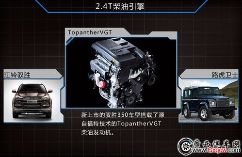 江鈴新馭勝S350極致動力,高扭矩:采用路虎衛(wèi)士同款發(fā)動機,福特技術(shù)TopantherVGT 柴油發(fā)動機。**知名埃孚6速手自一體變速箱,與寶馬3系、5系同款,相比一般5速自動變速器,油耗節(jié)約8%,加速性能提升4%,重量減輕12%。