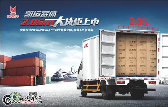 凱運(yùn)2.05米大貨柜輕卡,貨柜空間已超17立方米,能夠更好地滿足物流運(yùn)輸從業(yè)者更大載貨空間之需求。