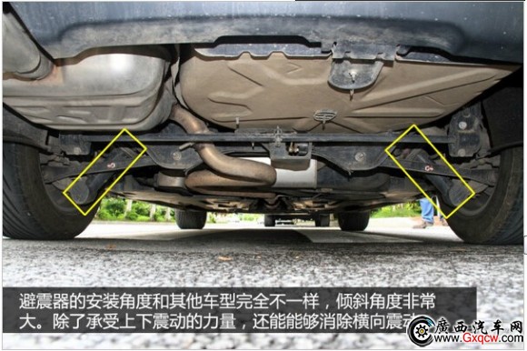 對于后懸來說,絕大部分的避震器頂都是直接和車架連接的。產(chǎn)生的問題和前懸類似。而C5的后懸避震器頂卻是安裝在副車架上,優(yōu)點也類似于前懸“戴帽子”的方法。
