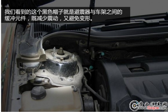 C5前懸的避震螺栓都是安裝在一頂“帽子”上,然后通過這頂帽子周圍的螺栓再安裝到車架上。這種方式不但可以減少震動,而且通過分散受力,車架即使在高強度的駕駛中也不容易產(chǎn)生變形。