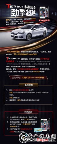 T時(shí)代的酷炫技能昭示著汽車智能時(shí)代已經(jīng)到來, T時(shí)代新C5,給你不一樣的科技駕乘感受。想了解更多T時(shí)代新C5的智美科技嗎?趕緊參與#T時(shí)代新C5科技組合勁擎超越#有獎(jiǎng)互動(dòng)問答吧,有機(jī)會(huì)獲得100元手機(jī)話費(fèi)獎(jiǎng)勵(lì),還有機(jī)會(huì)將iPhone6直接抱回家哦!