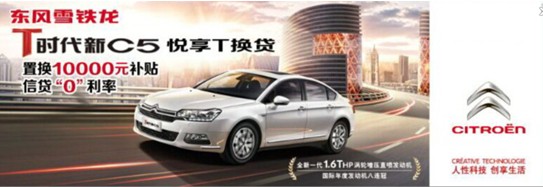 2014年東風(fēng)雪鐵龍最耀眼的明星車型,非T時代新C5莫屬。東風(fēng)雪鐵龍T時代新C5,搭載1.6Thp渦輪增壓直噴發(fā)動機(jī)、MCS大師級底盤、Citron Connect車載智能互聯(lián)系統(tǒng)以及STT智能啟停系統(tǒng)。全新科技和高端配置讓T時代新C5出類拔萃,擁有優(yōu)越的駕駛體驗(yàn)、完美的底盤感受、面對擁堵路況的輕松自如。