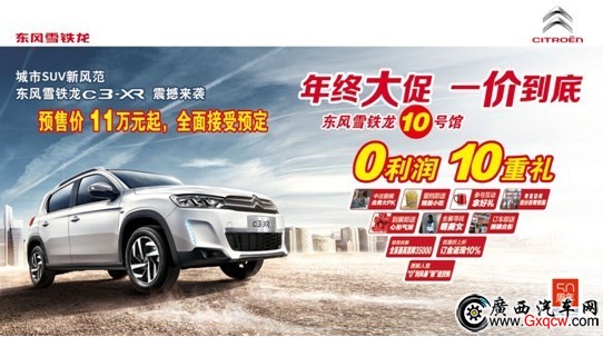 2014年12月5日—9日,在南寧國際會展中心,東風雪鐵龍年終鉅惠,錯過就再等一年!安毁I貴的,只買對的”,就在廣西龍康雪鐵龍十號館,只要您買車,0利潤,優(yōu)惠一價到底,另有十重大禮送。