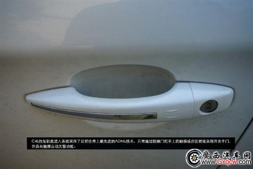 除了車內(nèi)的智能多媒體系統(tǒng)大有看頭外,C4L車外門把手同樣也蘊(yùn)藏著科技秘密。通過觸摸感應(yīng)無鑰匙進(jìn)入系統(tǒng),可完美避免開關(guān)車門還需要手忙腳亂找鑰匙的尷尬場面,讓開門鎖門變得更從容自在。