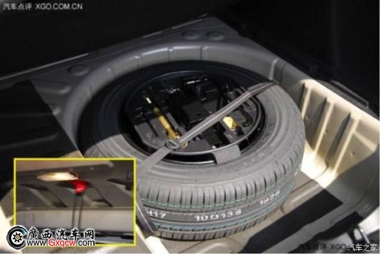 ▲后備箱板下的存放的是新世嘉的非全尺寸備胎子午線備胎。值得一提的是,隨車除了配備了常規(guī)工具外,還配備的滅火器和自動打氣泵。