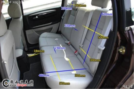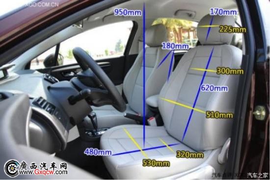 ▲前排座椅相關數據(頭枕到車頂的距離為220mm)