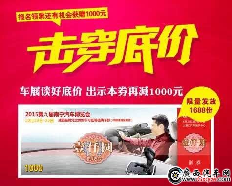 從現(xiàn)在開始在鳳凰汽車團(tuán)購網(wǎng)上報(bào)名,便有工作人員電話確認(rèn),確認(rèn)后可獲得價(jià)值20元的車展門票,還有車展邀請(qǐng)函及1000元購車抵用券。車展期間憑抵用券在現(xiàn)場(chǎng)訂車可抵扣同等價(jià)值車款,或贈(zèng)送同等價(jià)值禮包!還不趕快報(bào)名?
