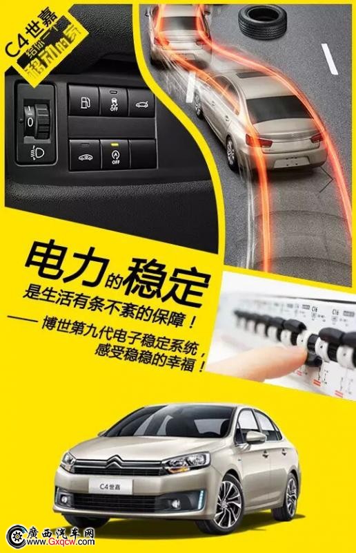 C4世嘉搭載了博世第九代ESP電子穩(wěn)定系統(tǒng),模塊更輕,反應更快,精準智能檢測車輛行駛狀況,有效保障車輛始終穩(wěn)定行駛。
