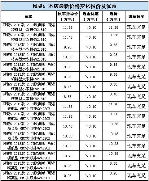 滿城歡樂迎新年,長道送福祝團圓。2013年,在進駐廣西的三年里,廣西長道汽車就以**一步的服務宗旨贏得了廣大車友的信賴、支持與厚愛,取得了“長城汽車全國標桿店”的榮譽稱號。在新年來臨之際,廣西長道特推“瘋狂大促,年末狂歡”現(xiàn)車銷售活動,讓您享到全年*低價。2013款長城風駿5歐洲版現(xiàn)金優(yōu)惠1000元,更有年終限量禮包。心動不如行動,讓我們一起把愛帶回家過年吧!