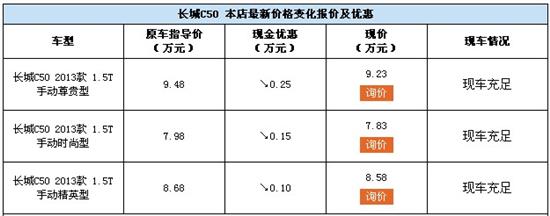 滿城歡樂迎新年,長道送福祝團(tuán)圓。2013年,在進(jìn)駐廣西的三年里,廣西長道汽車就以**一步的服務(wù)宗旨贏得了廣大車友的信賴、支持與厚愛,取得了“長城汽車全國標(biāo)桿店”的榮譽稱號。在新年來臨之際,廣西長道特推“瘋狂大促,年末狂歡”現(xiàn)車銷售活動,讓您享到全年*低價。2013款長城C50 *高現(xiàn)金優(yōu)惠2500元,更有年終限量禮包。心動不如行動,讓我們一起把愛帶回家過年吧!