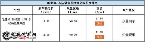 近日,廣西長道汽車店內(nèi)哈弗H6少量現(xiàn)車銷售,顏色可選,目前無優(yōu)惠,送豪華禮包。感興趣的朋友可以到店咨詢購買,詳情見下表