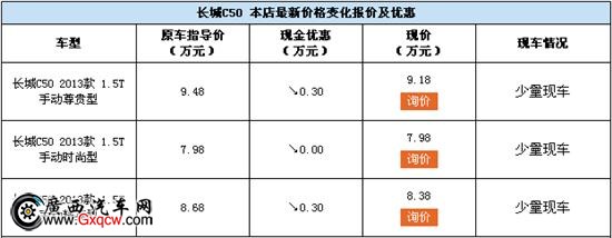 “三月三”歌圩節(jié)首次列入廣西法定節(jié)假日,最炫民族風又將開始風靡全國。為迎接這個屬于廣西人民的傳統(tǒng)名俗佳節(jié),廣西長道特以“放價”形式,慶祝壯鄉(xiāng)的節(jié)日。廣西長道長城C50特供少量現(xiàn)車,顏色可選,更有3000元現(xiàn)金優(yōu)惠,感興趣的朋友可以到店或來電咨詢購買。