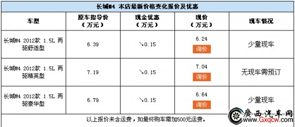 為了回饋廣大車友對廣西長道的一直以來支持,為了使消費(fèi)者提前享受意想不到的實惠,讓想要購車的市民朋友能夠提前享受到車展上的優(yōu)惠.廣西長道隆重推出“車展政策提前享”活動,特供少量現(xiàn)車,長城M4現(xiàn)金直降1500元。更有驚喜豪禮。銷售熱線:0771-2330301