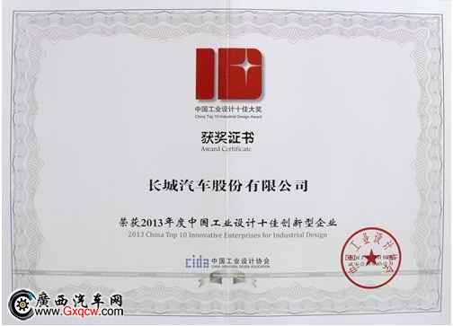 日前,中國工業(yè)設(shè)計(jì)協(xié)會(huì)評(píng)選的“2013年度中國工業(yè)設(shè)計(jì)十佳大獎(jiǎng)”榜單揭曉,長(zhǎng)城汽車獲評(píng)“中國工業(yè)設(shè)計(jì)十佳創(chuàng)新型企業(yè)”。