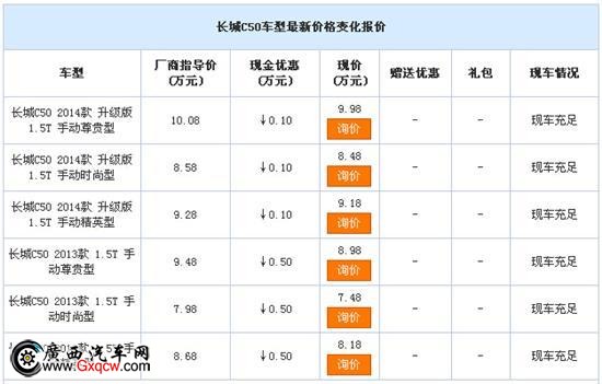 金秋送爽天氣轉(zhuǎn)涼,廣西長道豪禮回饋活動(dòng)不降溫!店內(nèi)特舉辦周末聚劃算閉館特賣會(huì)。長城C50現(xiàn)金*高優(yōu)惠5000元,C50升級(jí)版現(xiàn)金優(yōu)惠1000元,送1000元愛車禮包。機(jī)會(huì)不容錯(cuò)過!廣西長道服務(wù)熱線:安吉大道(往武鳴方向)高速路口長城4S店(0771-2330301);白沙大道亭江立交旁(金灣花城斜對(duì)面)長城4S旗艦店:(0771-5780390)。我們將竭誠為您服務(wù)!