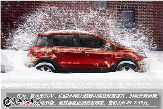 23項(xiàng)全新升級, 2014款長城M4, 繼2012年驚世一躍、蹦極上市之后,2014款長城M4于7月22日重裝上市,提供舒適型、豪華型及精英型3款車型,售價(jià)分別為6.49萬元、6.89萬元、7.39萬元。