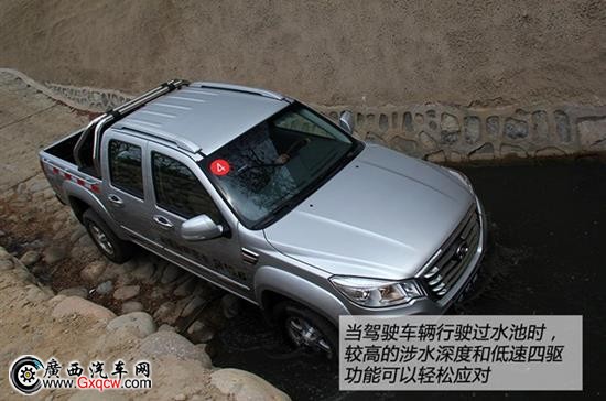 風(fēng)駿6分別搭載了2.0T和2.4L兩套動(dòng)力總成,同時(shí)還分為汽油版和柴油版兩個(gè)版本。這次試駕的車型為2.0T柴油版車型,*大輸出功率為95kW,峰值扭矩可以達(dá)到305Nm。與之匹配的是一臺(tái)6速手動(dòng)變速箱,換擋過程十分平順。此外,該車采用了前雙叉臂式扭桿彈簧獨(dú)立懸掛,后鋼板彈簧非獨(dú)立懸掛。風(fēng)駿6還配備了兩驅(qū)、智能四驅(qū)和低速四驅(qū)三種駕駛模式。