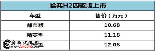 日前,長城汽車正式推出哈弗H2四驅(qū)版本,提供都市版、精英型、尊貴型三款車型,普通款售價為10.68萬-12.08萬元。
