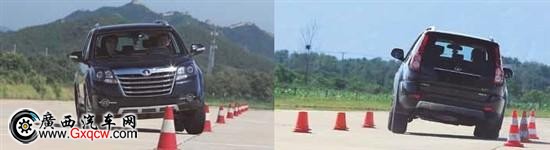 哈弗H5 的高轉(zhuǎn)速區(qū)間動(dòng)力爆發(fā)力不好,對(duì)測(cè)試成績(jī)影響不小。零到百公里加速中,起步的動(dòng)力還不錯(cuò),但緩慢的加速導(dǎo)致最終才跑了15.1 秒。在繞樁和變線測(cè)試中,由于重心高,側(cè)傾很早出現(xiàn)。不過(guò)車身整體性很好,自重又大,所以側(cè)向下壓到一定的地步時(shí)又感覺到有力的支撐,但此時(shí)車尾已開始橫向側(cè)滑。再變向時(shí)要把車身整體慣性甩過(guò)來(lái)需要一個(gè)較長(zhǎng)的過(guò)程,所以它的繞樁變線成績(jī)也一般。操控圈讓哈弗H5 極限操控的特點(diǎn)體現(xiàn)的更突出,在走圓時(shí)H5 的回轉(zhuǎn)圈數(shù)過(guò)多,轉(zhuǎn)向反應(yīng)遲,不按線路走,在接近極限是還會(huì)出現(xiàn)轉(zhuǎn)向死點(diǎn),這就不得不放慢些速度。車身重心高自重又大,在出圓時(shí)車身往復(fù)性就慢。在直線行駛中換擋時(shí)還有嘬車的現(xiàn)象,只有頂住油門才能銜接的順暢些。剎車的效果還不錯(cuò),而且熱衰減控制的很好,不過(guò)由于自重大每次剎車快停時(shí)會(huì)有車身起伏的現(xiàn)象?傊,在極限測(cè)試中H5 表現(xiàn)的總是驚心動(dòng)魄卻又有驚無(wú)險(xiǎn)。