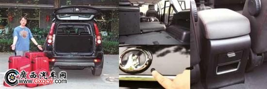 大、中號(hào)行李箱三個(gè),外加兩個(gè)大包一個(gè)背包,行李空間雖然沒有數(shù)據(jù),但從裝的行李就能感覺到它的空間非常實(shí)用;把后座椅掀起,后座椅靠背可以放平來(lái)拓展空間。開啟尾門的按鍵可不太容易找;雖然是自動(dòng)空調(diào),但在后排沒有設(shè)置一個(gè)出風(fēng)口,對(duì)于后排乘客來(lái)說(shuō)是個(gè)遺憾。