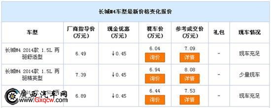 月底*后2天時(shí)間,廣西長(zhǎng)道長(zhǎng)城汽車4S店舉辦“搶!搶!搶!月底沖量限量限時(shí)特購(gòu)”優(yōu)惠活動(dòng),2014新款長(zhǎng)城M4*高直降現(xiàn)金4500元,現(xiàn)車銷售。長(zhǎng)城M4為您度身定做*優(yōu)惠的價(jià)格!搶到等于賺到,數(shù)量有限,欲購(gòu)從速。不要再猶豫啦!趕緊帶上一輛愛車回家吧~廣西長(zhǎng)道服務(wù)熱線:安吉大道(往武鳴方向)高速路口長(zhǎng)城4S店(0771-2330301);白沙大道亭江立交旁(金灣花城斜對(duì)面)長(zhǎng)城4S旗艦店:(0771-5780390)。我們將竭誠(chéng)為您服務(wù) !
