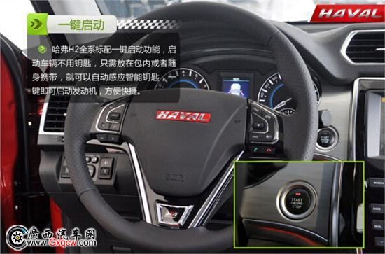 在舒適配置方面,哈弗H2的三個(gè)版本都不低。藍(lán)牙免提通話系統(tǒng)、定速巡航、真皮多功能方向盤(pán)、換擋提示器、行車電腦、前后排中央扶手、后排座椅按比例放倒等功能一個(gè)都不少。差價(jià)五千的低配都市版要比精英型少了真皮座椅和電加熱,高配車型則在此基礎(chǔ)上增加了六向電動(dòng)調(diào)節(jié),并帶有腰部支撐功能,還是非常劃算的。而哈弗H2標(biāo)配的一鍵啟動(dòng)功能則讓其又上升了一個(gè)檔次。