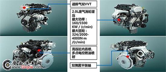 該發(fā)動(dòng)機(jī)主要技術(shù)亮點(diǎn)是:廢氣渦輪增壓,通過(guò)廢氣再循環(huán),提高發(fā)動(dòng)機(jī)的功率與扭矩,相較普通發(fā)動(dòng)機(jī)可以增加40%的功率,保障了充足的動(dòng)力輸出。同時(shí),還兼顧了燃油經(jīng)濟(jì)性,采用缸內(nèi)直噴技術(shù),通過(guò)內(nèi)置噴油嘴,直接把高壓汽油噴入氣缸,使燃油與空氣混合更均勻,采用雙VVT技術(shù),始終為發(fā)動(dòng)機(jī)提供**進(jìn)氣量,達(dá)到完美燃燒,降低油耗。而靜音鏈正時(shí)系統(tǒng)、雙平衡軸、雙頂置凸輪軸、充鈉空心氣門、高性能活塞連桿輕量化設(shè)計(jì)等先進(jìn)技術(shù)的應(yīng)用,也有利于汽車使用的穩(wěn)定性、降噪和輕量化,大大提高了整機(jī)的高性能與先進(jìn)性。