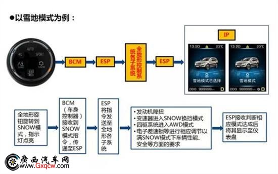 為了這個(gè)系統(tǒng)我還特意問了下我的老師傅,又從網(wǎng)上查了好多材料。根據(jù)網(wǎng)站介紹,這個(gè)全地形控制系統(tǒng)好像是長城汽車自己研發(fā)的,如果是真的,那么長城的研發(fā)確實(shí)很強(qiáng)大。就我統(tǒng)計(jì)的,現(xiàn)在世界上也只有路虎、吉普、福特三家能夠造出全地形系統(tǒng),沒想到哈弗也能造出來。熟悉哈弗H9的大家應(yīng)該都知道,哈弗H9的全地形系統(tǒng)有6個(gè)模式,全自動、雪地、沙地、泥地、運(yùn)動、低速四驅(qū),原理就是廠家開始的時(shí)候就將這幾種地形的參數(shù)扭矩等數(shù)值設(shè)定在了電腦中,當(dāng)選擇相應(yīng)模式時(shí),電子系統(tǒng)會將變速器、四驅(qū)系統(tǒng)等相關(guān)設(shè)備調(diào)整到設(shè)定好的參數(shù)區(qū)間當(dāng)中,方便駕駛員在不同地形情況下的駕駛。
