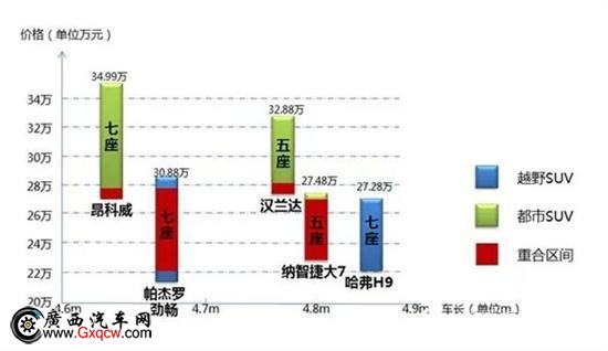 **個發(fā)現(xiàn)是哈弗H9在其細分區(qū)間幾無對手。是的,哈弗H9在20-30萬全地形七座越野SUV這一市場區(qū)間沒有對手。從自主層面講,七座中大型SUV有比亞迪S7與吉利豪情,但無論是售價還是功能性上這兩款自主SUV同H9都無法形成直接競爭。從合資產(chǎn)品來看,H9的原型車豐田普拉多售價高達50萬,幾乎是H9價格的兩倍,而別克昂科威、漢蘭達定位于城市SUV且售價均大幅度高于H9,其最低配的價格完全可以買到H9*高配的產(chǎn)品,在不考慮功能性定位的前提下,當(dāng)消費者面臨選自主哈弗H9*高配還是昂科威最低配的選擇時,如果退回10年前,答案恐怕會毫無例外的指向昂科威等合資品。但如今,一方面自主品牌技術(shù)、品質(zhì)不斷精進,另一方面汽車市場消費觀念日趨成熟,消費者如今會做出怎樣的選擇將是個問號。
