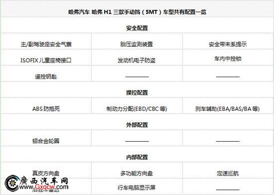 哈弗H1 三款手動擋車型之間配置差異
