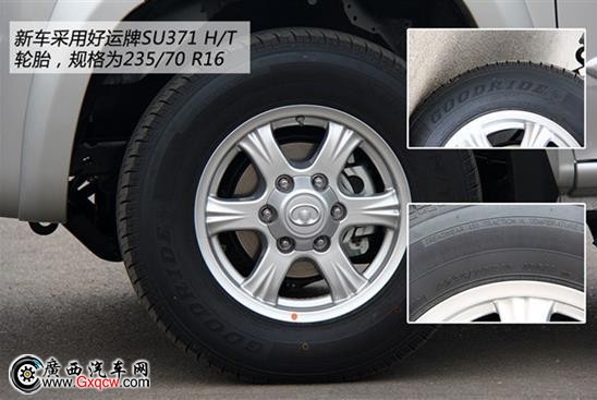 風(fēng)駿6分別搭載了2.0T和2.4L兩套動力總成,同時還分為汽油版和柴油版兩個版本。這次試駕的車型為2.0T柴油版車型,*大輸出功率為95kW,峰值扭矩可以達到305Nm。與之匹配的是一臺6速手動變速箱,換擋過程十分平順。此外,該車采用了前雙叉臂式扭桿彈簧獨立懸掛,后鋼板彈簧非獨立懸掛。風(fēng)駿6還配備了兩驅(qū)、智能四驅(qū)和低速四驅(qū)三種駕駛模式。