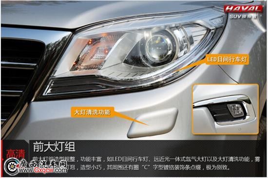 哈弗H9采用鷹眼式氙氣大燈設計,勾勒出極具攻擊力的前部造型,霸氣威武。內嵌的雙菱形燈具邊框,并以鍍鉻邊條勾勒出整體輪廓,視覺效果提升很大。同時,前大燈還配備了LED日間行車燈和大燈清洗功能,提升了行駛安全性。