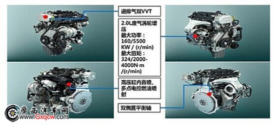 該發(fā)動(dòng)機(jī)主要技術(shù)亮點(diǎn)是:廢氣渦輪增壓,通過(guò)廢氣再循環(huán),提高發(fā)動(dòng)機(jī)的功率與扭矩,相較普通發(fā)動(dòng)機(jī)可以增加40%的功率,保障了充足的動(dòng)力輸出。同時(shí),還兼顧了燃油經(jīng)濟(jì)性,采用缸內(nèi)直噴技術(shù),通過(guò)內(nèi)置噴油嘴,直接把高壓汽油噴入氣缸,使燃油與空氣混合更均勻,采用雙VVT技術(shù),始終為發(fā)動(dòng)機(jī)提供**進(jìn)氣量,達(dá)到完美燃燒,降低油耗。而靜音鏈正時(shí)系統(tǒng)、雙平衡軸、雙頂置凸輪軸、充鈉空心氣門、高性能活塞連桿輕量化設(shè)計(jì)等先進(jìn)技術(shù)的應(yīng)用,也有利于汽車使用的穩(wěn)定性、降噪和輕量化,大大提高了整機(jī)的高性能與先進(jìn)性。