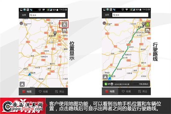 客戶還可以使用車聯(lián)網(wǎng)app的地圖搜索到位置點(diǎn),做好標(biāo)記即可使用“短信分享”功能,將位置信息分享至好友。
