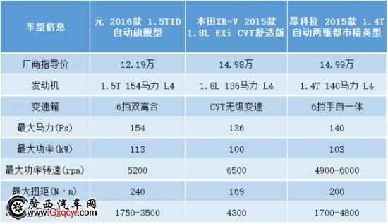 除了與眾不同的外觀設計,在科技配置方面,比亞迪元也極為豐富,科技配置如Pm2.5綠凈系統(tǒng)、Keyless系統(tǒng)、CarPad、360°全景影像系統(tǒng)、云服務、移動電站等;安全配置如博世第九代esP車身穩(wěn)定系統(tǒng)、胎壓監(jiān)測系統(tǒng)、車道偏離系統(tǒng)、行車記錄儀、定速巡航系統(tǒng)、全車8安全氣囊等都出現(xiàn)在元的配置單上。雖然已經可以不將合資車型作為對標車型,但是筆者還是想將比亞迪元和中小型suv市場最熱銷的車型東風本田Xrv以及開拓細分市場的別克昂科拉加以對比以體現(xiàn)其配置豐富性。