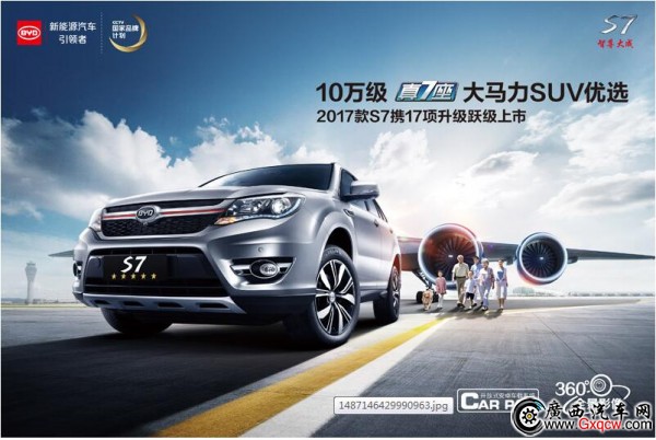新年新氣象,2月15日,比亞迪燃油旗艦SUV——2017款S7躍級(jí)上市,新車不僅造型更凌厲霸氣,配置也全面優(yōu)化升級(jí),將采用開放式CarPad安卓車載系統(tǒng)及4G互聯(lián)功能,并新增電動(dòng)背門、主副駕座椅通風(fēng)等17項(xiàng)實(shí)用舒適配置,誠(chéng)意滿滿。此次全新登場(chǎng)的2017款S7共提供2種動(dòng)力,6款車型,售價(jià)10.99萬元——15.99萬元。