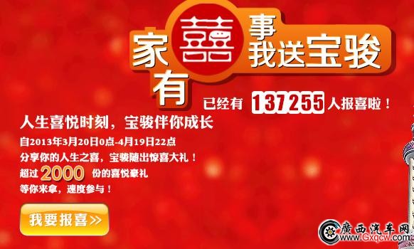 心動不如行動,現(xiàn)在登錄寶駿汽車官方活動網(wǎng)站了解活動詳情,參與全民報喜!就有機會奪得大獎!