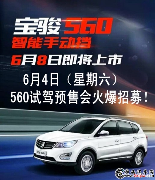 寶駿560智能手動(dòng)檔--柳州雙誠(chéng)試駕預(yù)售會(huì)火熱招募中!