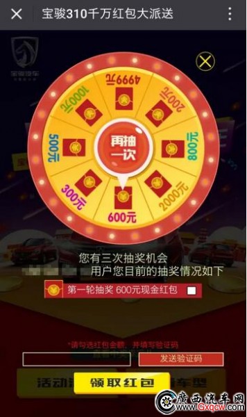 4. 每個(gè)用戶(hù)共有三次抽獎(jiǎng)機(jī)會(huì),三次抽獎(jiǎng)完成后,選擇您想要的金額,點(diǎn)擊發(fā)送驗(yàn)證碼,并將所收到的短信驗(yàn)證碼填入對(duì)話(huà)框,并點(diǎn)擊“領(lǐng)取紅包”即視為抽獎(jiǎng)完成;