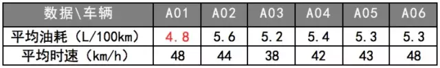 統(tǒng)計油耗時著實令人驚訝,A01號車的平均油耗僅有4.9L/100km,而尾車即使在跟車情況下表現(xiàn)也不錯,比如A05號車的平均油耗僅有5.1L/100km。