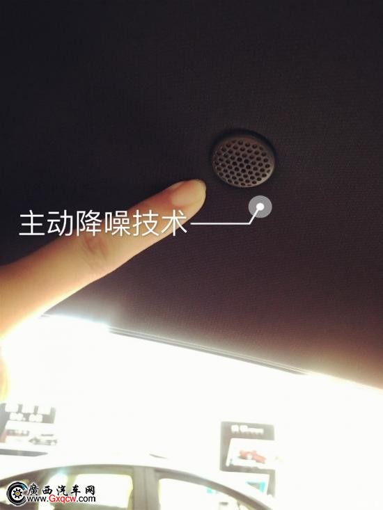 主動降噪技術(shù),通過設(shè)置在駕駛座右上角頭頂處的麥克風(fēng)實時偵測發(fā)動機噪音,然后通過揚聲器釋放抵消噪音的反向聲波,從而消除噪音。