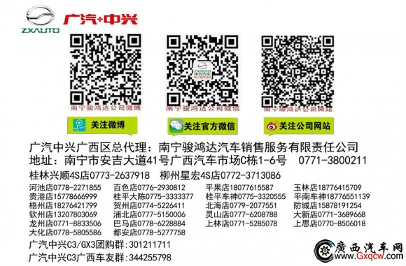 南寧駿鴻達(dá)汽車銷售服務(wù)有限責(zé)任公司(中興)|銷售熱線:0771-3800211|地址:廣西南寧市北湖北路71號北湖國際汽車城二期B區(qū)中興汽車展廳