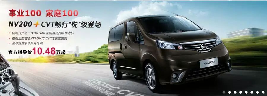 NV200:事業(yè)100,家庭100,NV200,購2013款NV200送“三重禮四千元”,2014款日產(chǎn)NV200 CVT躍級(jí)登場(chǎng),無級(jí)變速世界**,現(xiàn)在購車更享五月特惠價(jià);