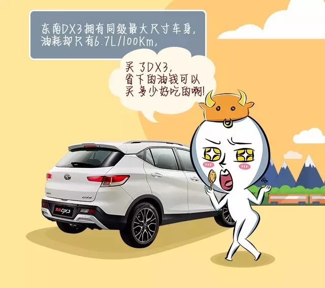 當時,我決定買東南DX3,主要是因為東南DX3擁有同級*大尺寸車身,油耗卻只有6.7L/100Km,十分的經(jīng)濟實惠。