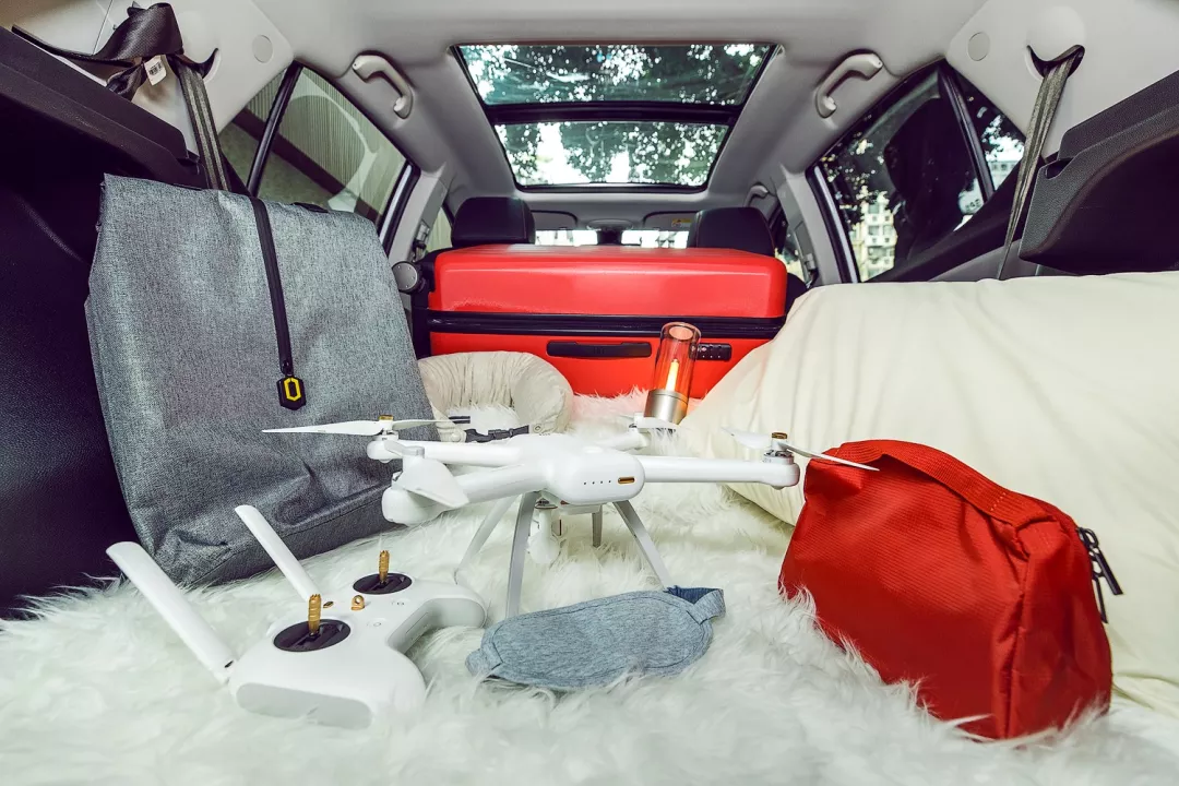 出行前,先曬曬我們的小米旅行裝備:加裝了90分行李箱、洗漱包、雙肩包、乳膠枕、護頸枕、眼罩、小米無人飛機,打造了超舒適的后排空間;而前排則加裝了米家智能氛圍燈、70邁智能后視鏡、米家對講機、米家小相機和小米6手機,充滿了科技感。