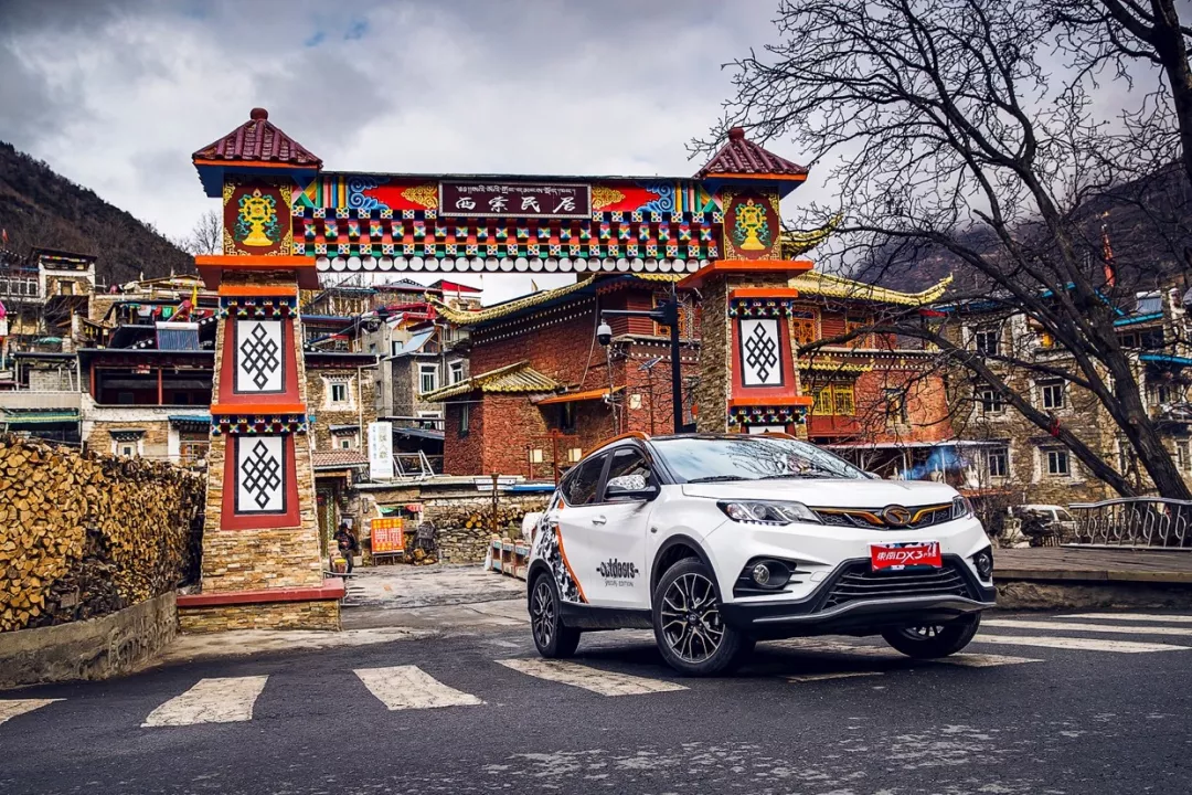 不得不說,古村寨的民族特色與東南DX3戶外版搭配在一起別有一番風味。